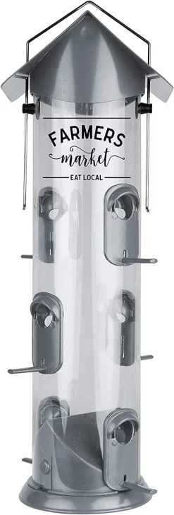 Nature’s Way Farmhouse Deluxe Easy Clean Tubed Wild Bird Feeder – Silver – 2.8 Qt Cap