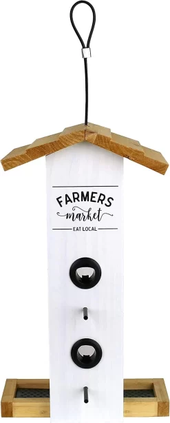 Nature’s Way Farmhouse Vertical Wooden Hopper Wild Bird Feeder – White – 1.5 Qt Cap