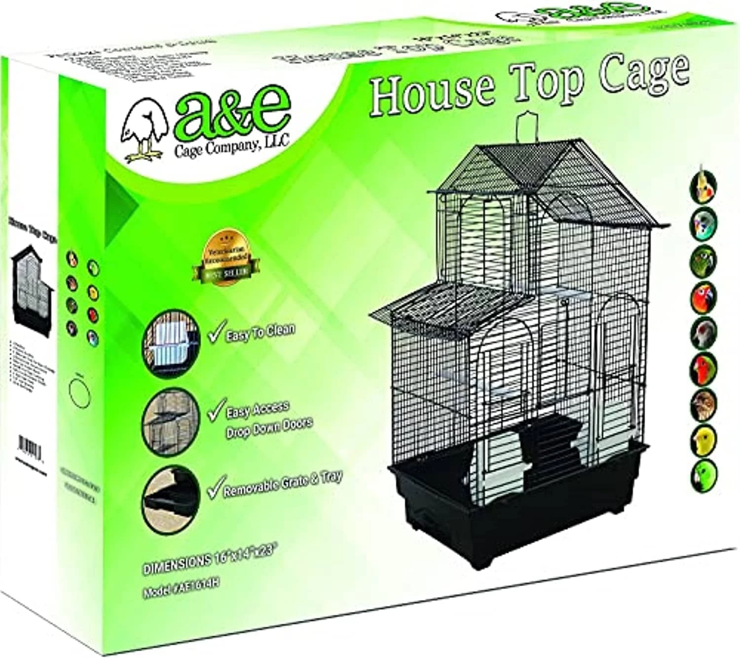 A&E Cage Company House Top Bird Cage In Retail Box – Black – 16 X 14 X 23 In