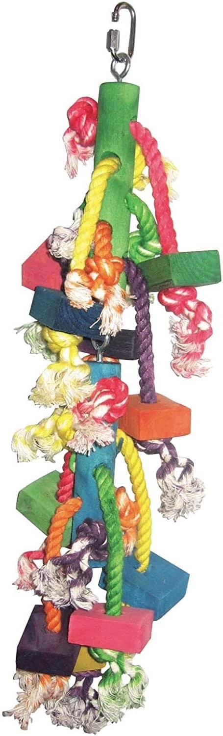 A&E Cage Happy Beaks Real Wood With Hanging Blocks On Rope Bird Toy – Large