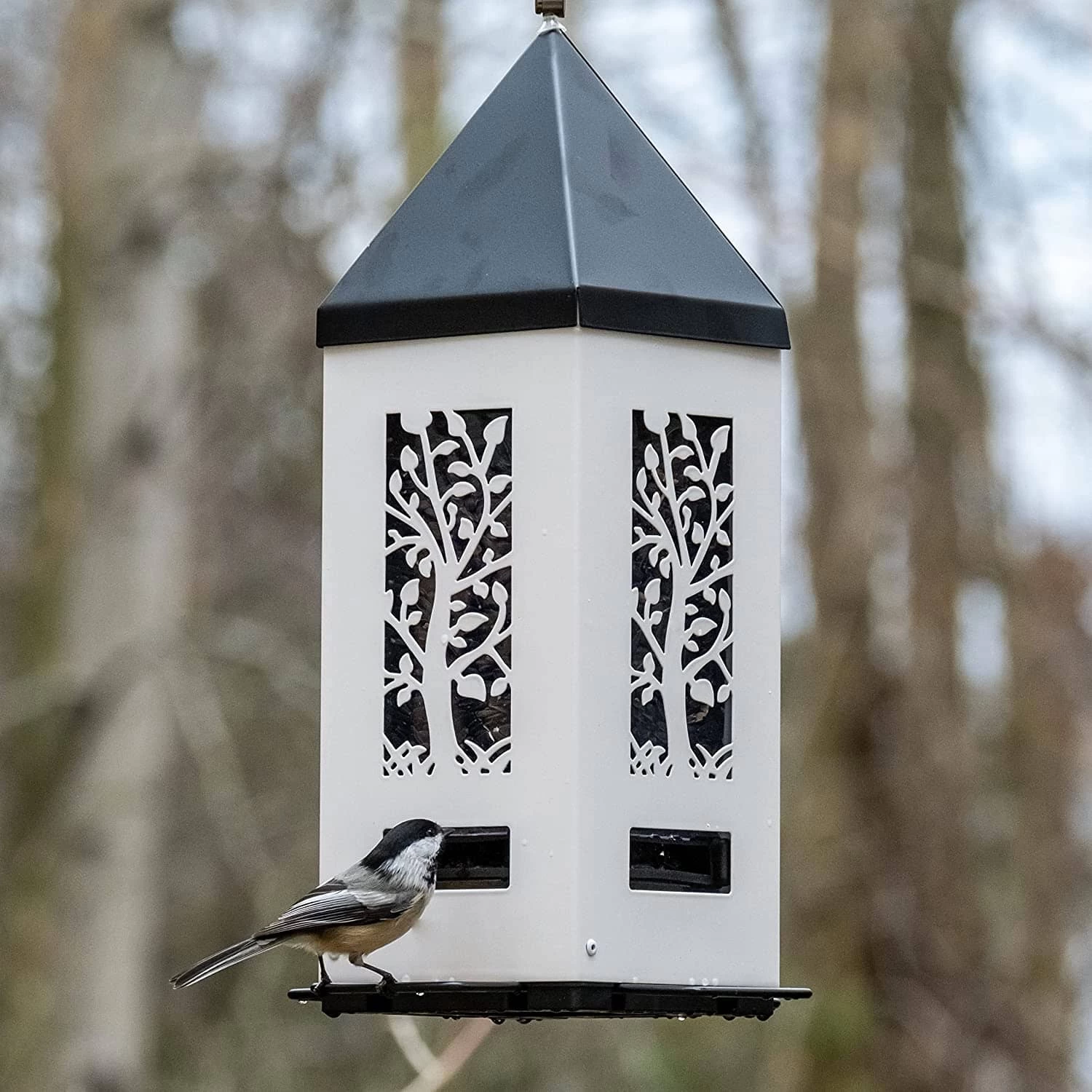 Nature’s Way Squirrel Shield Metal Lantern And Squirrel-proof Wild Bird Feeder – White – 2 Qt Cap
