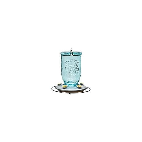 Perky-Pet Mason Jar Glass Hummingbird Feeder – Blue – 32 Oz Cap