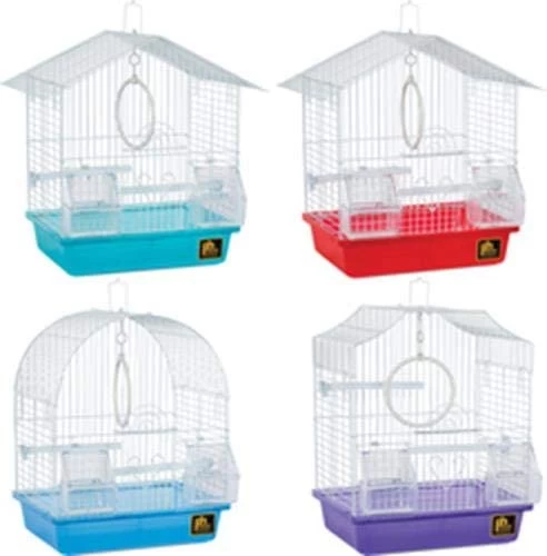 Prevue Hendryx’s Assorted Small Bird Cages are the perfect home for your canaries, finches, or other small birds. These amazing cages have an integrated bottom grille so you can lift the entire cage mesh off of the base for easy cleaning. The cages also feature outside cups held in place with spring hinged doors, as well as two plastic perches and a swing. This multipack contains four base colors and three cage top styles each with 0.375″ wire spacing.