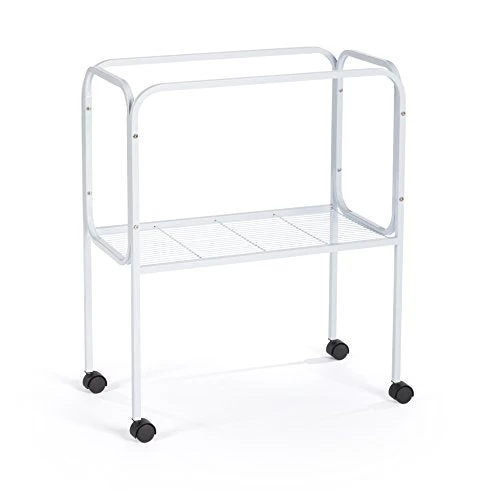 The Prevue Hendryx Cage Stand features a sturdy tubular steel structure and rolling casters for simple locomotion. The storage shelf is ideal for holding maintenance equipment, food/treats and more! This stand will hold cages with a 26″ x 14″ base; such as the Medium Flight Bird Cage Kit, Triple Roof Bird Cage, Cockatiel Flight Bird Cage, Cockatiel House Bird Cage, Cockatiel Bird Cage, Flight cage, and the Tall Flight Cage from Prevue Hendryx.